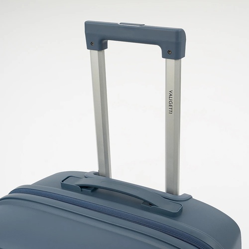 Модель на четырех сдвоенных пластиковых колесах, с выдвижной металлической ручкой, ручкой-переноской сверху и сбоку, пластиковыми ножками для защиты от износа.
