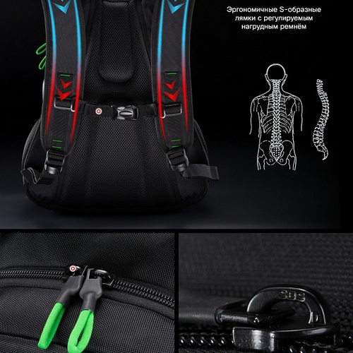Плечевые вентилируемые лямки с укрепляющими ремнями.