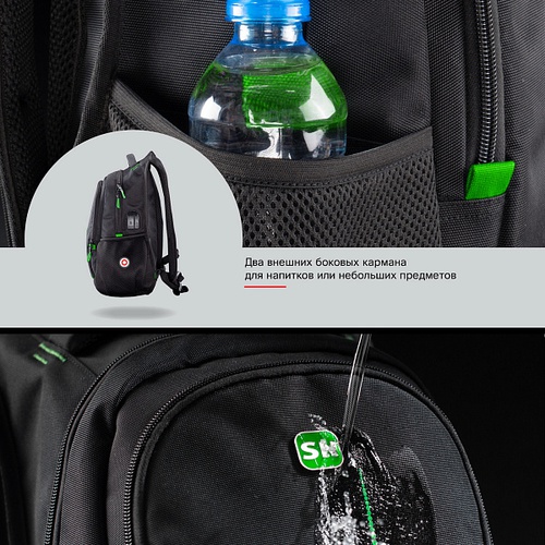 В первом (у спинки) – основное большое отделение с карманом на липучке.