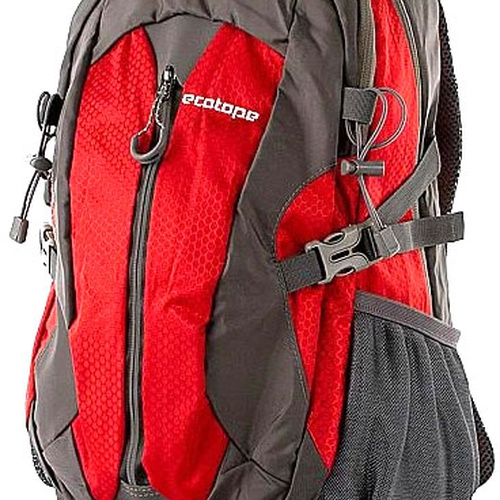 По бокам — карман-сетка, стягивающие ремни, резинки со стоппером, снизу — две петли для крепления.
