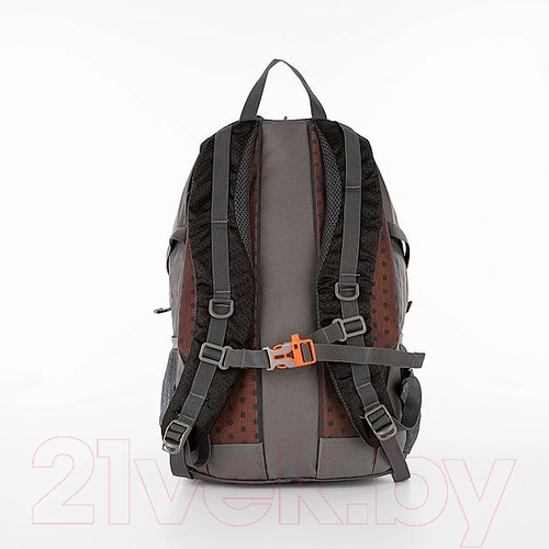 Рюкзак от торговой марки из текстильного материала в сочетании серого и черного цвета.