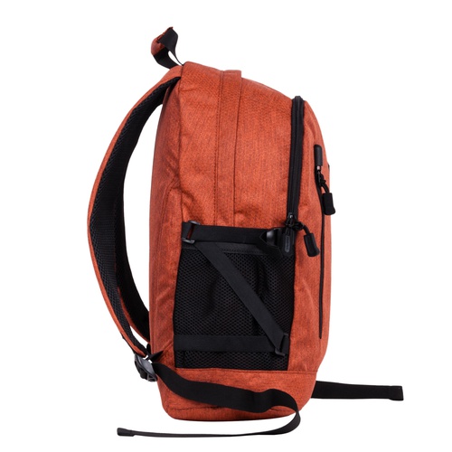 По бокам расположены открытые карманы из сетчатого материла, и стяжки из резинки для регулирования объема рюкзака.