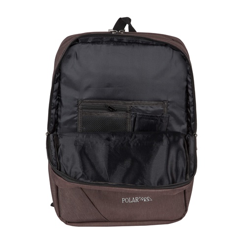 Внутри есть уплотненный карман для ноутбука, диагональю до 14” и отделение с открытыми кармашками для мелких вещей.