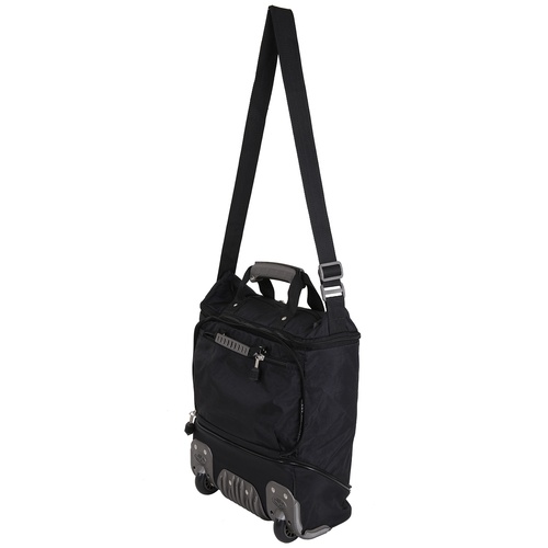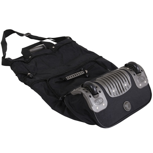 Выдвижная тележка отсутствует: катить можно держась за плечевой ремень.
